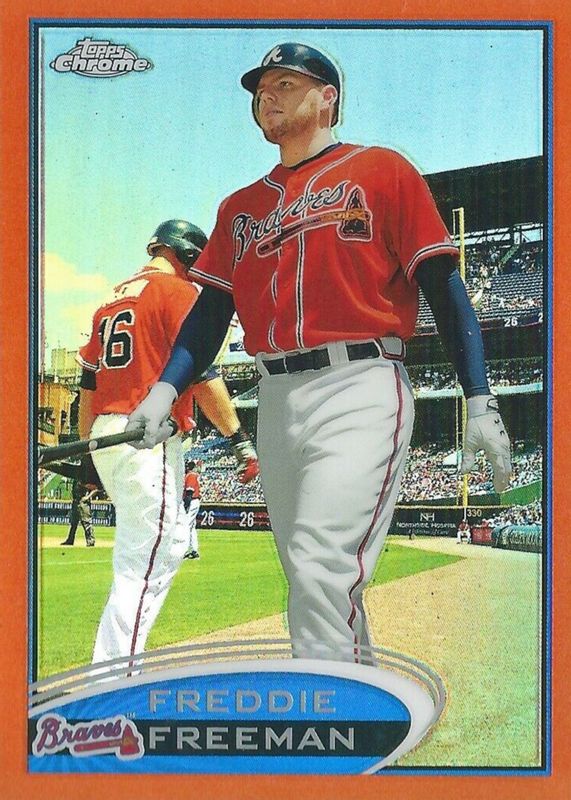The Freddie Freeman 2012 Topps Chrome #19 Orange Refractor card in Raw condition has moved up $4.99 (+49.9%) in the last 30 days and was last sold for $14.99 .