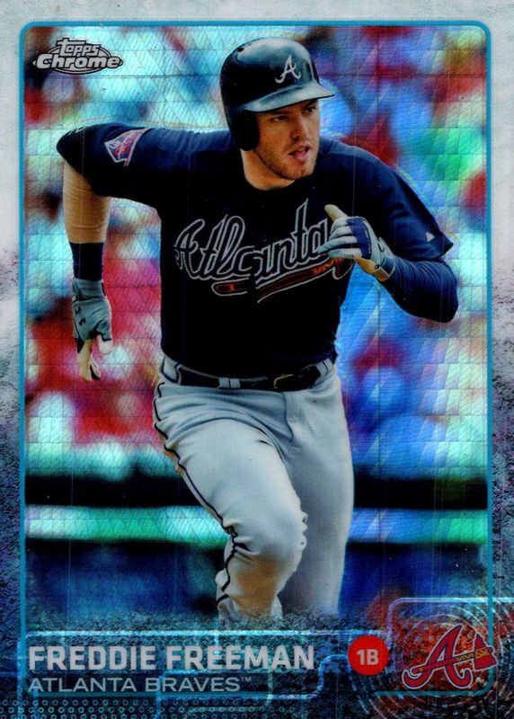 This card is 1 of 11 Freddie Freeman's card variations in the 2015 Topps Chrome set being tracked by Sports Card Investor, including Pink Refractor, Prism Refractor, Refractor, Purple Refractor /250, and Blue Refractor /150.