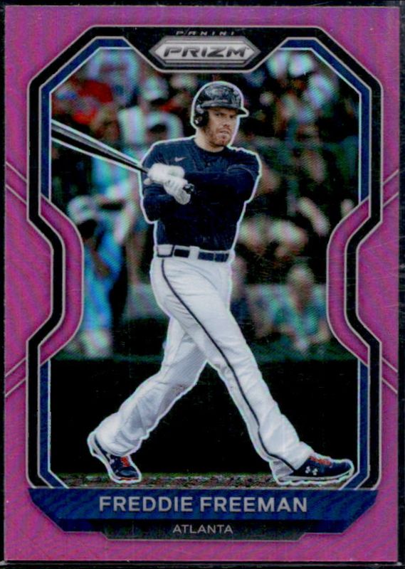 The Freddie Freeman 2021 Prizm #112 Pink card is 1 of 96 Freddie Freeman's card variations in the 2021 Prizm set being tracked by Sports Card Investor, including Base, Blue, Blue Velocity, Carolina Blue, and Cosmic Haze.