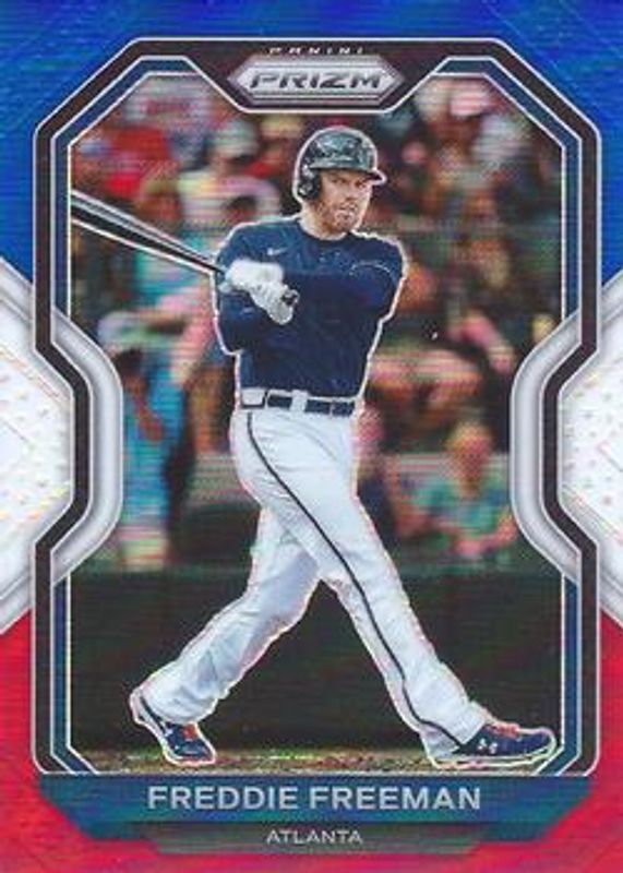 The Freddie Freeman 2021 Prizm #112 Red White Blue card is 1 of 96 Freddie Freeman's card variations in the 2021 Prizm set being tracked by Sports Card Investor, including Base, Blue, Blue Velocity, Carolina Blue, and Cosmic Haze.