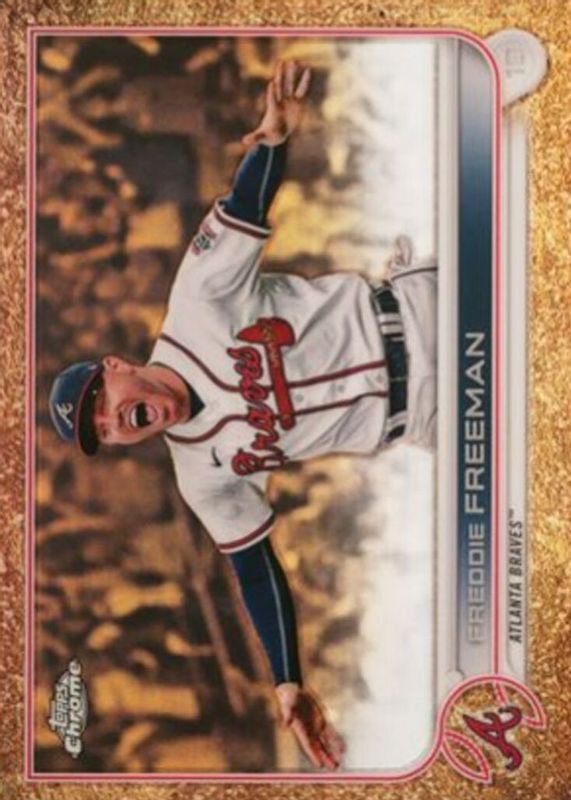This card is 1 of 10 Freddie Freeman's card variations in the 2022 Topps Gilded Collection set being tracked by Sports Card Investor, including Mini-Diamond Gold Etch Refractor /50, RayWave Gold Etch Refractor /25, Lava Gold Etch Refractor /10, Superfractor /1, and Topps Chrome Gold Etch Autographs /99.