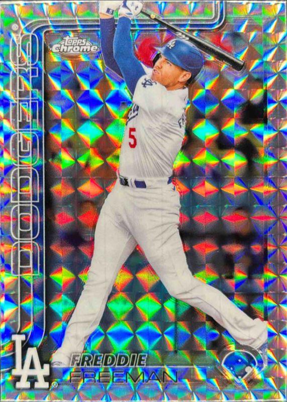 The Freddie Freeman 2025 Topps Chrome #23 Geometric Refractor card is 1 of 88 Freddie Freeman's card variations in the 2025 Topps Chrome set being tracked by Sports Card Investor, including Base, Image Variation, Lightboard Logo Variation, Negative Refractor, and Prism Refractor.