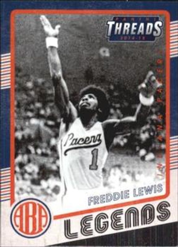 The Freddie Lewis 2014 Threads #6 ABA Legends card is 1 of 4 Freddie Lewis' card variations in the 2014 Threads set being tracked by Sports Card Investor, including ABA Legends - Century Proof Red /99, ABA Legends - Century Proof Gold /25, and ABA Legends - Century Proof Platinum /1.