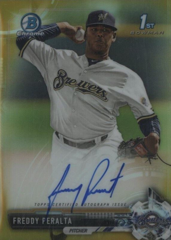 Best Prices Available For Sale of Freddy Peralta 2017 Bowman #CPA-FP Chrome Prospect Auto - Gold Refractor /50 (1st)