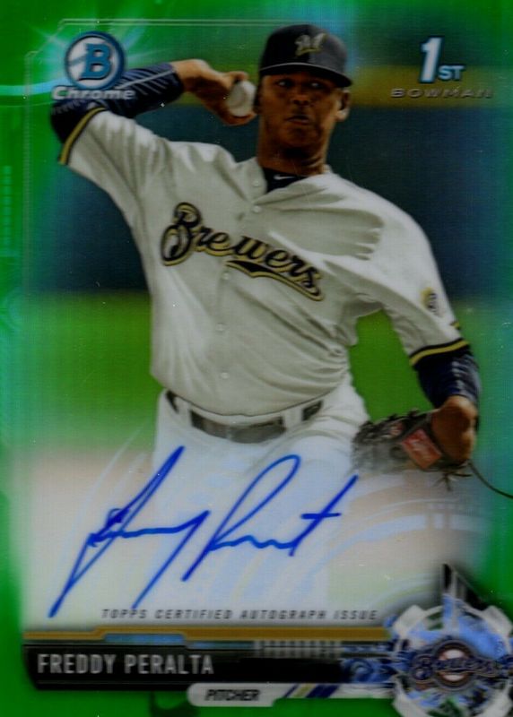 2017 Bowman Chrome Freddy Peralta Green Refractor On-Card Auto Brewers RC #/99