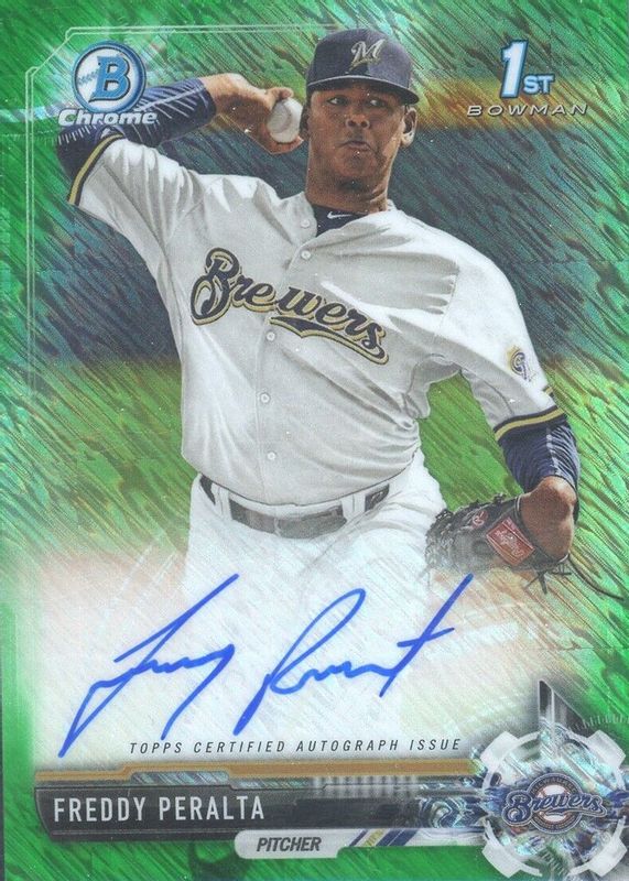 2017 Bowman Chrome 1st Freddy Peralta Green Shimmer Refractor Auto /99