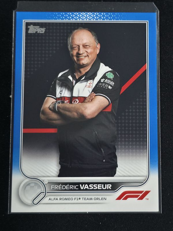 The Frederic Vasseur 2022 Topps Formula 1 #107 Blue /99 card is 1 of 20 Frederic Vasseur's card variations in the 2022 Topps Formula 1 set being tracked by Sports Card Investor, including Base, Checker Flag, Rainbow Foil, Aqua /199, and Fuchsia /150.