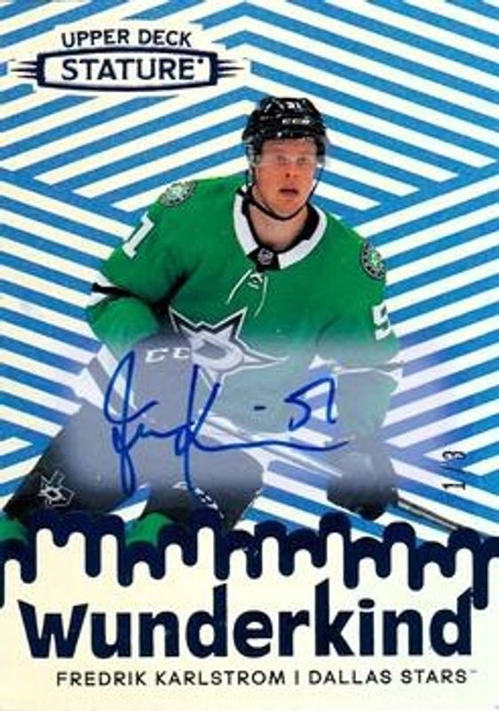 Fredrik Karlstrom 2022 Upper Deck Stature #W-33 Wunderkind Auto - Blue /3 Rookie RAW Price Guide