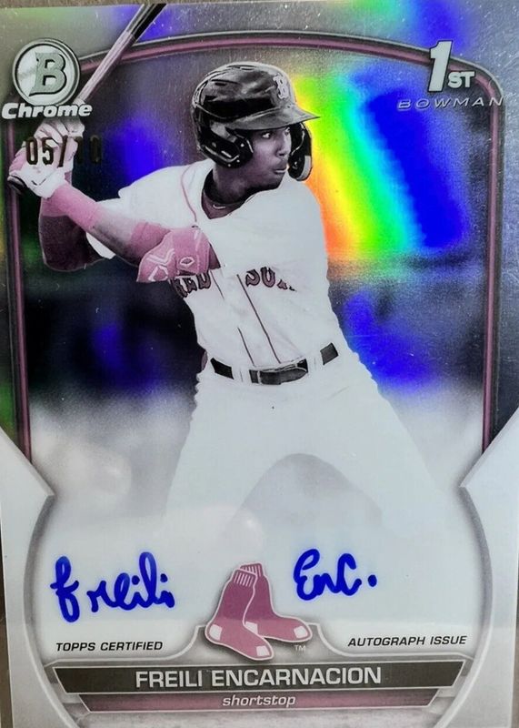 Freili Encarnacion 2023 Bowman #CPA-FE Chrome Prospect Auto - Pearl Refractor /10 (1st) RAW Price Guide