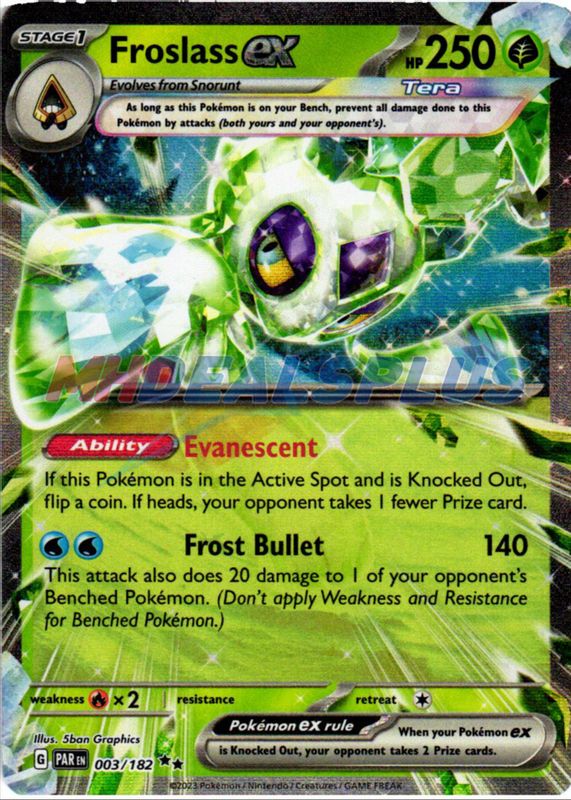 The Froslass ex 2023 Scarlet & Violet: Paradox Rift #003/182 Double Rare card in Raw TCG (Near Mint) condition has moved up $0.35 (+19.4%) in the last 30 days and was last sold for $2.15 .