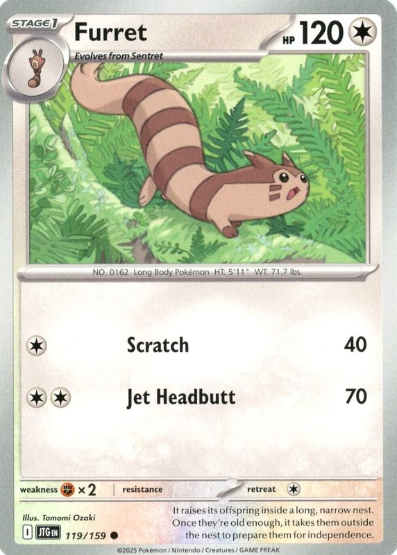 Furret 2025 Scarlet & Violet: Journey Together #119/159 Base RAW TCG (LIGHTLY PLAYED) Price Guide
