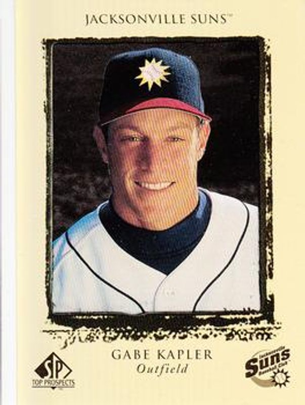 The Gabe Kapler 1999 SP Top Prospects #106 Base Rookie card is 1 of 5 Gabe Kapler's card variations in the 1999 SP Top Prospects set being tracked by Sports Card Investor, including #9 Base, #106 President's Edition /10, #9 President's Edition /10, and #D25 Destination: The Show /100.