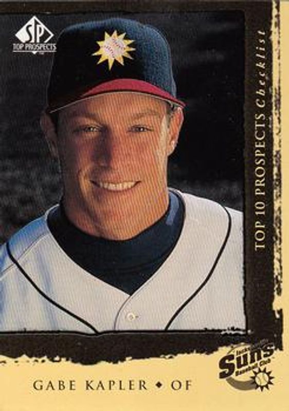The Gabe Kapler 1999 SP Top Prospects #9 Base Rookie card is 1 of 5 Gabe Kapler's card variations in the 1999 SP Top Prospects set being tracked by Sports Card Investor, including #106 Base, #106 President's Edition /10, #9 President's Edition /10, and #D25 Destination: The Show /100.