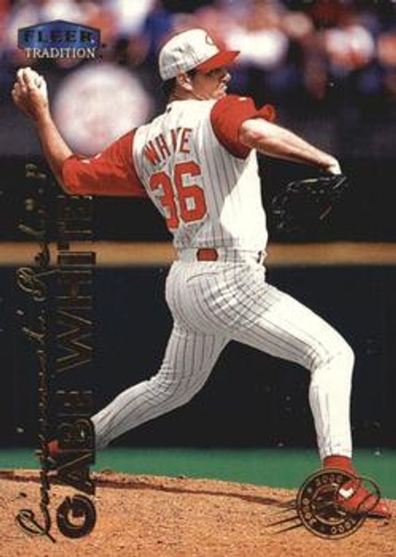 The Gabe White 1999 Fleer Tradition #450 Millennium card is 1 of 4 Gabe White's card variations in the 1999 Fleer Tradition set being tracked by Sports Card Investor, including Base, Warning Track Collection, and Starting 9 /9.