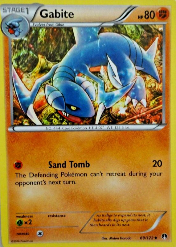 The Gabite 2016 XY: BREAKpoint #069/122 Base card in Raw TCG (Lightly Played) condition has not changed in price in the last 30 days and was last sold for $1.99 .