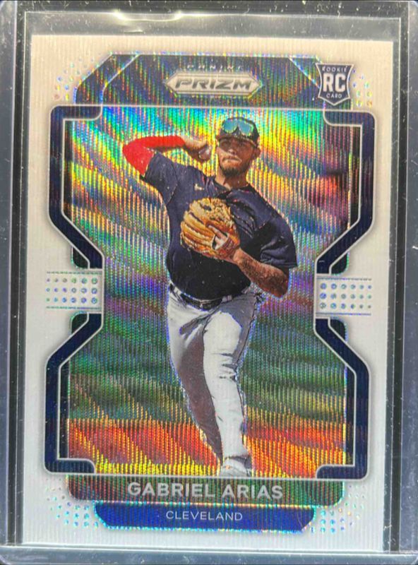 The Gabriel Arias 2022 Prizm #70 White Wave Rookie card is 1 of 43 Gabriel Arias' card variations in the 2022 Prizm set being tracked by Sports Card Investor, including Base, Blue, Blue Velocity, Carolina Blue, and Cosmic Haze.