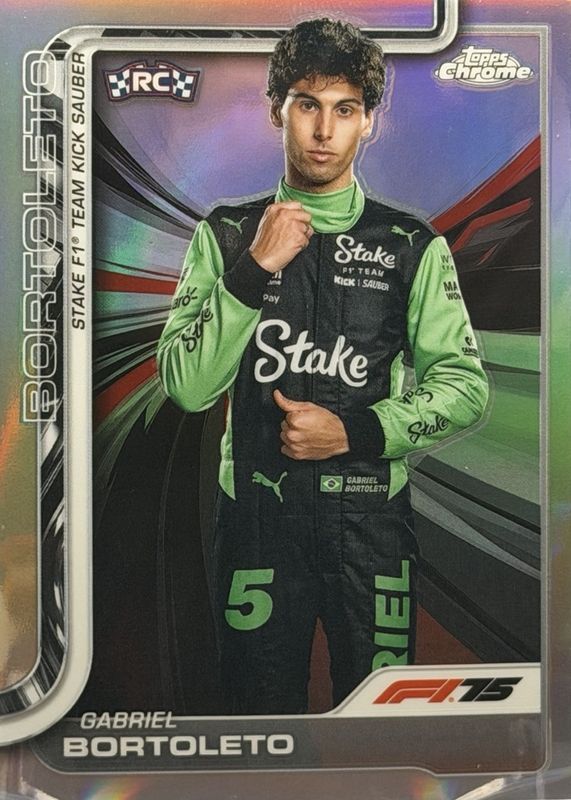 This card is 1 of 61 Gabriel Bortoleto's card variations in the 2025 Topps Chrome Formula 1 set being tracked by Sports Card Investor, including Base, Black & White Lazer Refractor, Black & White RayWave Refractor, Checker Flag Refractor, and Refractor.