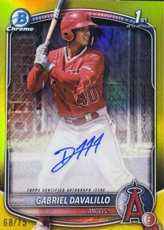 GABRIEL DAVALILLO /75 AUTO 2025 1ST BOWMAN CHROME Yellow REFRACTOR AUTO-Angels