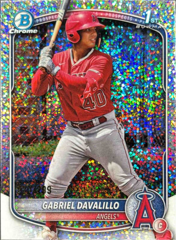 This card is 1 of 88 Gabriel Davalillo's card variations in the 2025 Bowman Chrome set being tracked by Sports Card Investor, including International Refractor Variation, Prospect Auto (1st), Prospect Auto - Black & White Shimmer Refractor (1st), Prospects (1st), and Prospects - Mini-Diamond Refractor (1st).