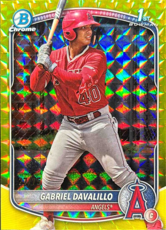 This card is 1 of 88 Gabriel Davalillo's card variations in the 2025 Bowman Chrome set being tracked by Sports Card Investor, including International Refractor Variation, Prospect Auto (1st), Prospect Auto - Black & White Shimmer Refractor (1st), Prospects (1st), and Prospects - Mini-Diamond Refractor (1st).