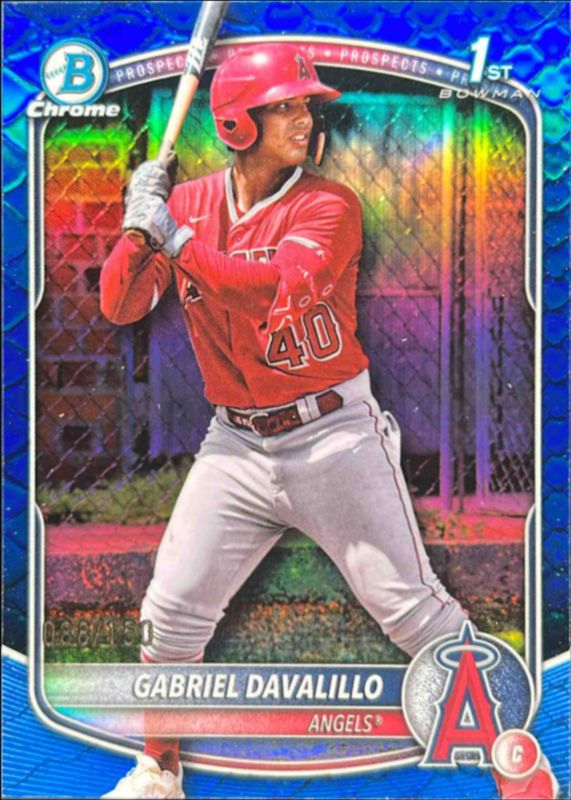 This card is 1 of 88 Gabriel Davalillo's card variations in the 2025 Bowman Chrome set being tracked by Sports Card Investor, including International Refractor Variation, Prospect Auto (1st), Prospect Auto - Black & White Shimmer Refractor (1st), Prospects (1st), and Prospects - Mini-Diamond Refractor (1st).