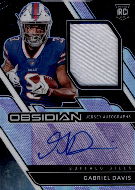 The Gabriel Davis 2020 Obsidian #239 Rookie Jersey Autographs - Electric Etch Purple (/20) card in Raw condition has not changed in price in the last 30 days and was last sold for $21.00 .