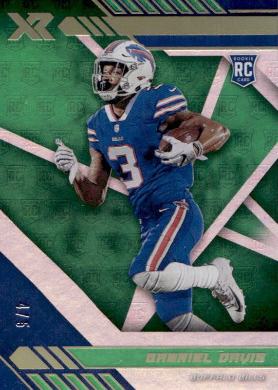 The Gabriel Davis 2020 XR #141 Green /5 Rookie card in Raw condition has not changed in price in the last 30 days and was last sold for $8.50 .