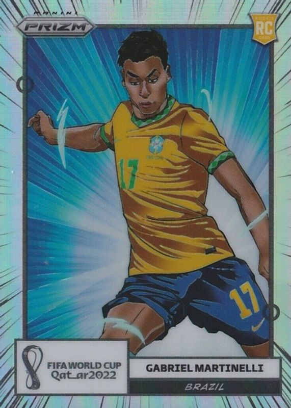 Gabriel Martinelli's Soccer cards are available in at least 81 sets. Gabriel Martinelli's biggest 7-day price movers are 2022 Prizm World Cup #4 Manga /(SSP), 2023 Donruss #23 Kaboom! /(SSP), and 2023 Topps UEFA Club Competitions Superstars #9 Iconic Black Chrome /10.