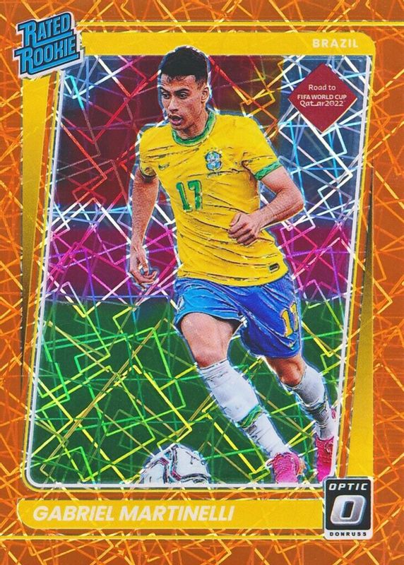The Gabriel Martinelli 2021 Donruss #182 Optic - Orange Velocity /49 Rookie card in Raw condition has not changed in price in the last 30 days and was last sold for $150.00 .