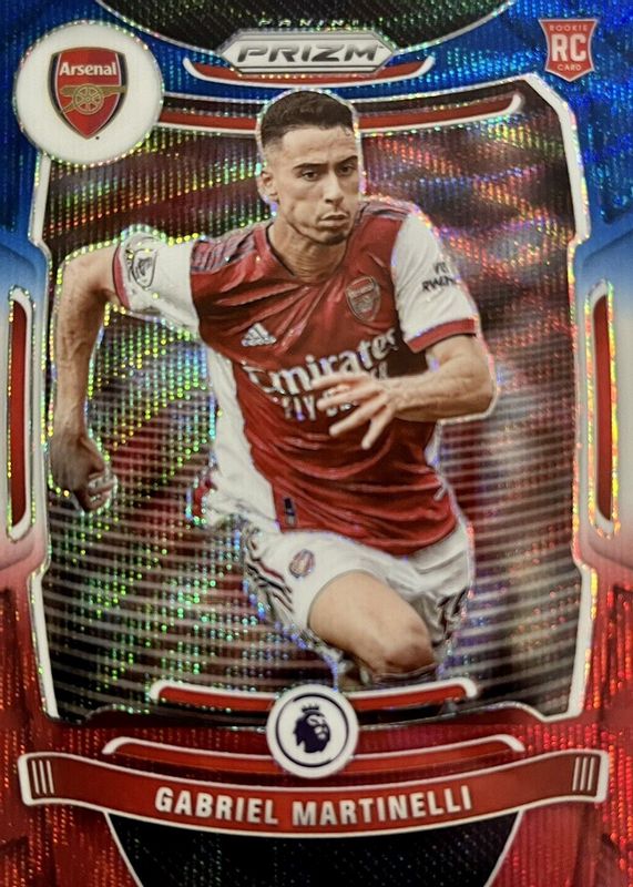 The Gabriel Martinelli 2021 Prizm Premier League #203 Red White Blue Rookie card in Raw condition has not changed in price in the last 30 days and was last sold for $6.99 .