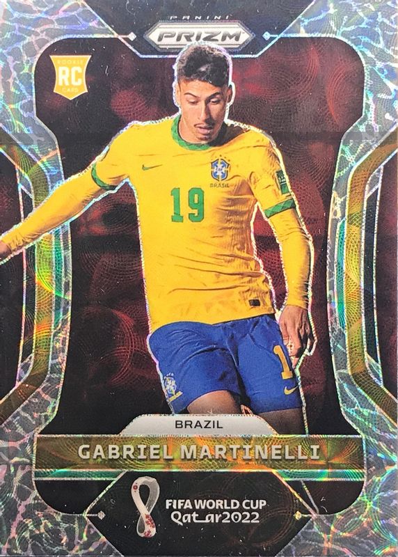 This card is 1 of 38 Gabriel Martinelli's card variations in the 2022 Prizm World Cup set being tracked by Sports Card Investor, including Base, Breakaway, Choice Red, Green Ice, and Green Wave.