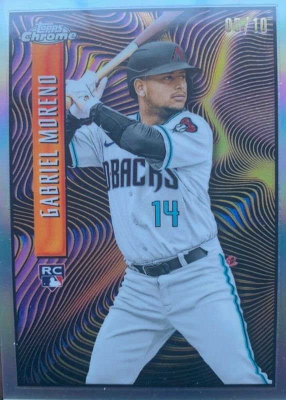 Gabriel Moreno's Baseball cards are available in at least 49 sets. Gabriel Moreno's biggest 7-day price movers are 2020 Bowman Chrome #CPA-GM Prospect Auto (1st), 2023 Topps Chrome #TCE-18 Topps Chrome Expose /10, and 2023 Topps Chrome Update #AC-GM Autographs - Blue RayWave Refractor /150.