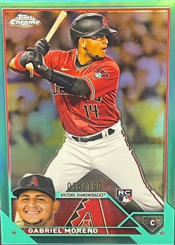 The Gabriel Moreno 2023 Topps Chrome #189 Aqua Refractor /199 Rookie card in Raw condition has not changed in price in the last 30 days and was last sold for $6.99 .