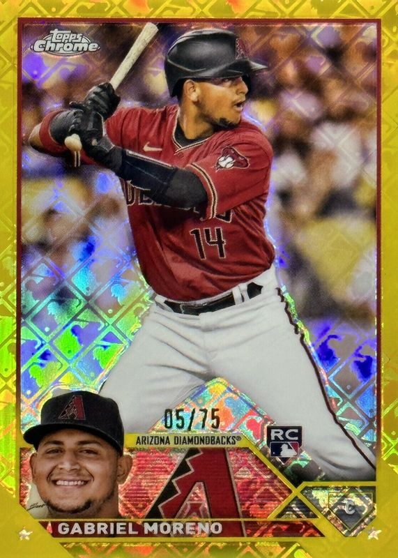 GABRIEL MORENO 2023 TOPPS CHROME ROOKIE LOGOFRACTOR YELLOW RC /75 Q3249