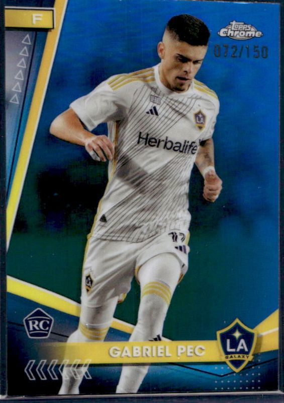 The Gabriel Pec 2024 Topps Chrome MLS #97 Blue Refractor /150 card is 1 of 71 Gabriel Pec's card variations in the 2024 Topps Chrome MLS set being tracked by Sports Card Investor, including #96 Base, #97 Base, #97 Aqua Lava Refractor, #96 Aqua Lava Refractor, and #97 Gold Lava Refractor.