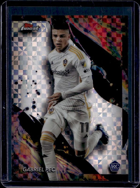 The Gabriel Pec 2024 Topps Finest MLS #130 Checkerboard Refractor card is 1 of 62 Gabriel Pec's card variations in the 2024 Topps Finest MLS set being tracked by Sports Card Investor, including #30 Base, #292 Base, #130 Base, #30 Aqua Refractor, and #130 Aqua Refractor.