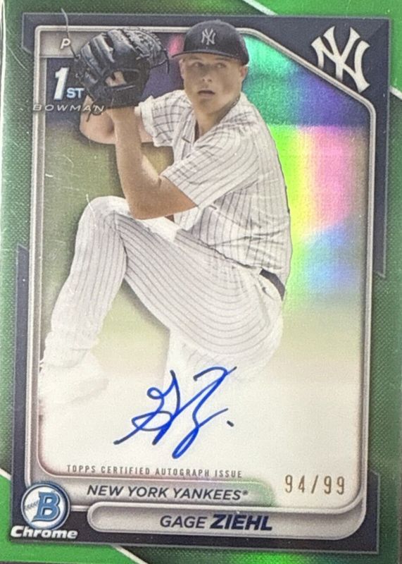 2024 Bowman Chrome Draft 1st Gage Ziehl Green Refractor Auto /99 Yankees