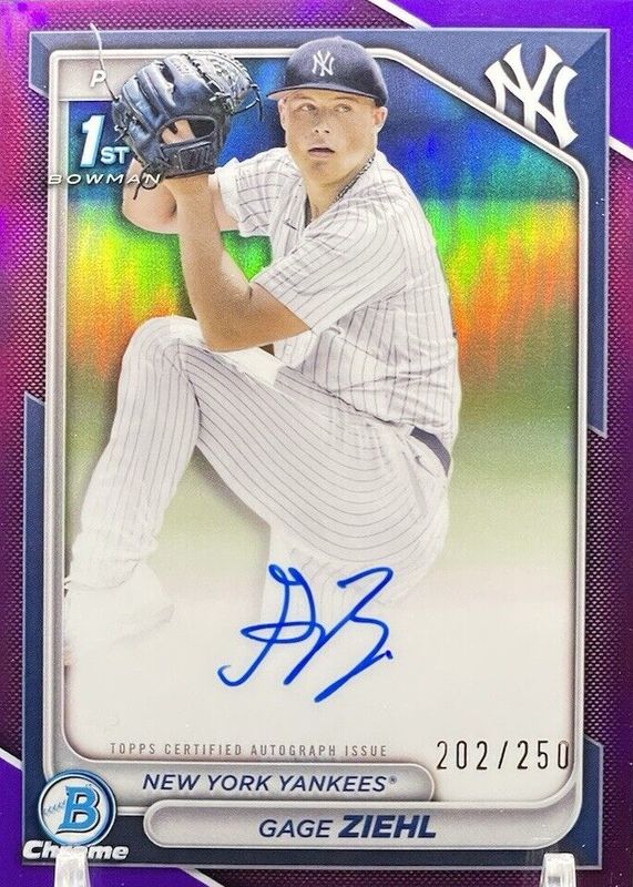 2024 Bowman Draft Chrome 1st Purple /250 Gage Ziehl #CPA-GZ Auto NY Yankees