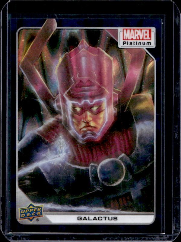 The Galactus 2023 Upper Deck Marvel Platinum #85 Teal Wave /799 card is 1 of 54 Galactus' card variations in the 2023 Upper Deck Marvel Platinum set being tracked by Sports Card Investor, including Base, Black Rainbow, Blue Rainbow, Blue Surge, and Purple Rainbow.