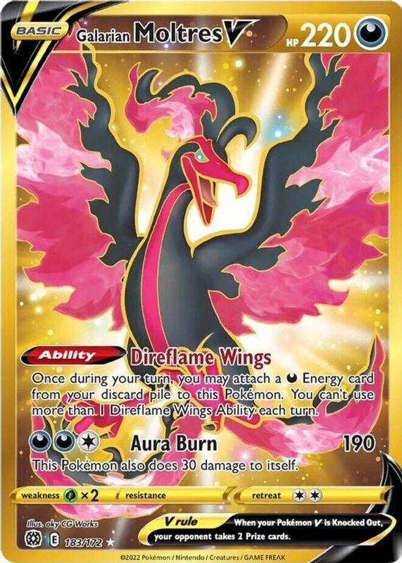 Galarian Moltres V 2022 Sword & Shield: Brilliant Stars #183/172 Holo (Secret) RAW TCG (HEAVILY PLAYED) Price Guide