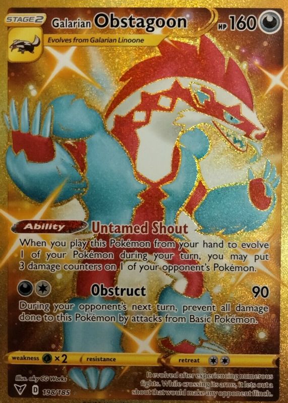 Galarian Obstagoon 198/185 Vivid Voltage Holo Secret Rare Gold Pokémon TCG NM