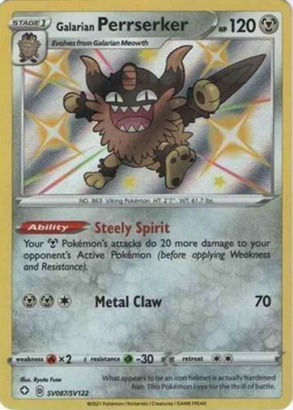 Galarian Perrserker SV087/SV122 Shining Fates: Shiny Vault Holo-NM