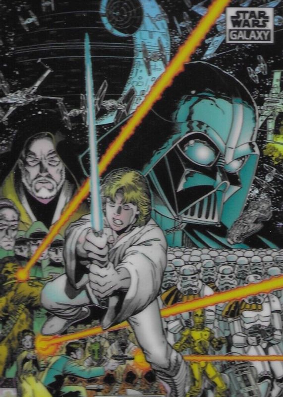 Other popular players in the 2021 Topps Chrome Star Wars Galaxy set include A Dangerous Boba Fett, A Dark Presence, Anakin Skywalker, Triple Threat, and New Friends.