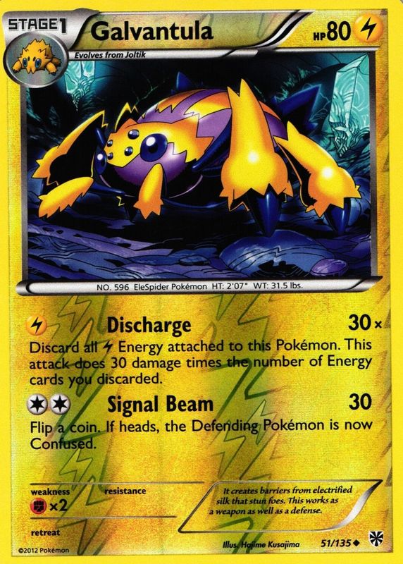 Galvantula 2013 Black & White: Plasma Storm #051/135 Reverse Holo RAW TCG (LIGHTLY PLAYED) Price Guide
