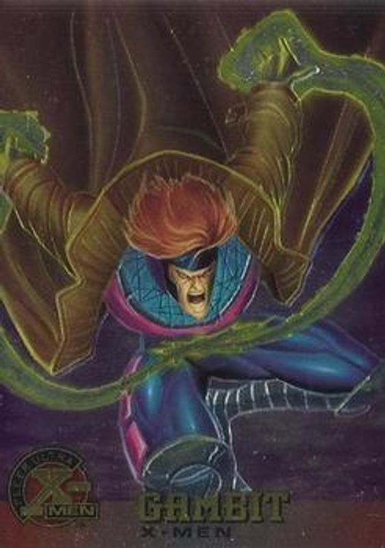 The Gambit 1995 Fleer Ultra X-Men Chromium #6 Base card is 1 of 5 Gambit's card variations in the 1995 Fleer Ultra X-Men Chromium set being tracked by Sports Card Investor, including #93 Base, #6 Gold Signatures, #93 Gold Signatures, and #5 Lethal Weapons.