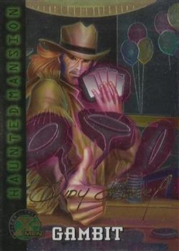 The Gambit 1995 Fleer Ultra X-Men Chromium #93 Gold Signatures card is 1 of 5 Gambit's card variations in the 1995 Fleer Ultra X-Men Chromium set being tracked by Sports Card Investor, including #6 Base, #93 Base, #6 Gold Signatures, and #5 Lethal Weapons.