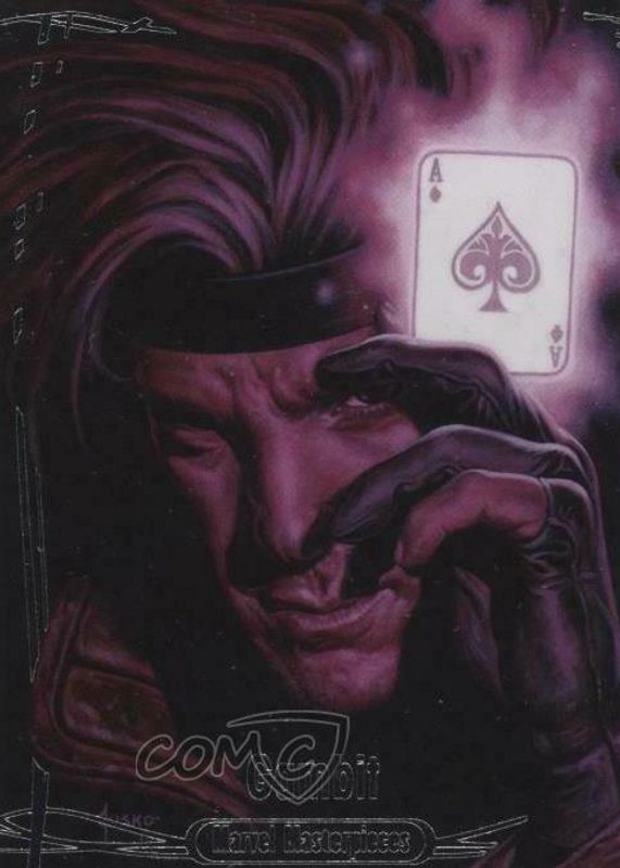 This card is 1 of 3 Gambit's card variations in the 2016 Upper Deck Marvel Masterpieces set being tracked by Sports Card Investor, including Epic Purple Foil /199, and Orange Foil /99.