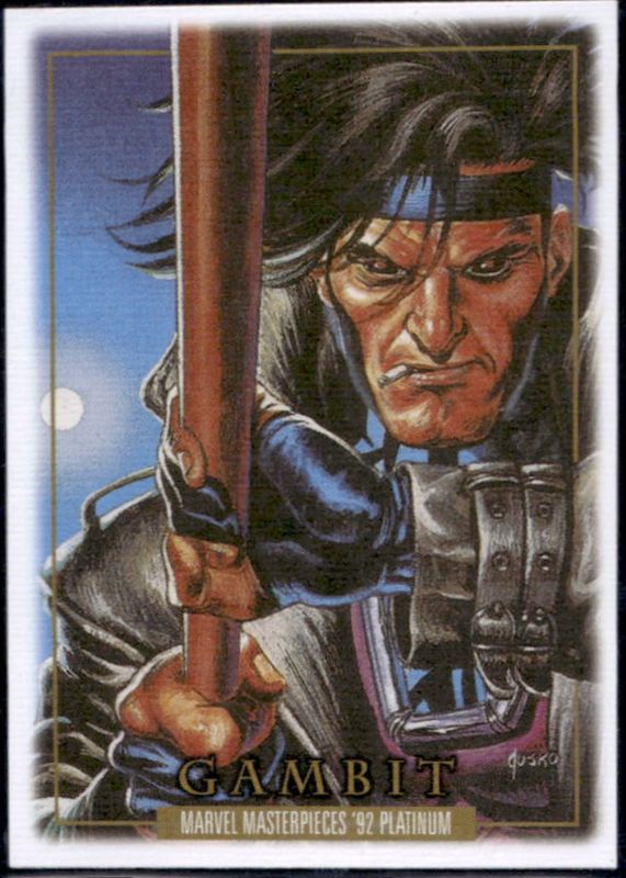 The Gambit 2024 Upper Deck Marvel Masterpieces '92 Platinum #29 Canvas card is 1 of 38 Gambit's card variations in the 2024 Upper Deck Marvel Masterpieces '92 Platinum set being tracked by Sports Card Investor, including Base, Blue Traxx, Clear Cut, Emerald Surge, and Holofoil.