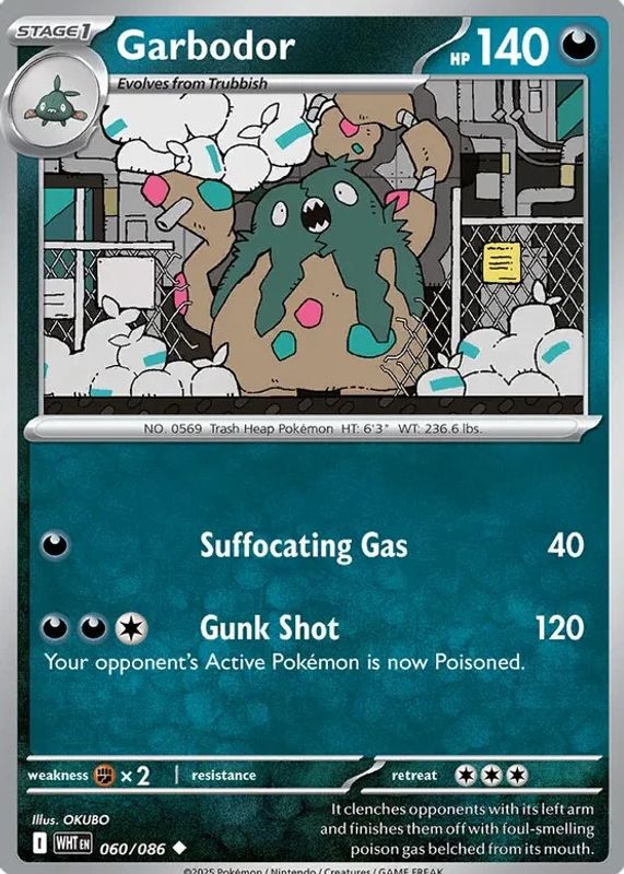 Garbodor 2025 Scarlet & Violet: White Flare #060/086 Base RAW TCG (LIGHTLY PLAYED) Price Guide