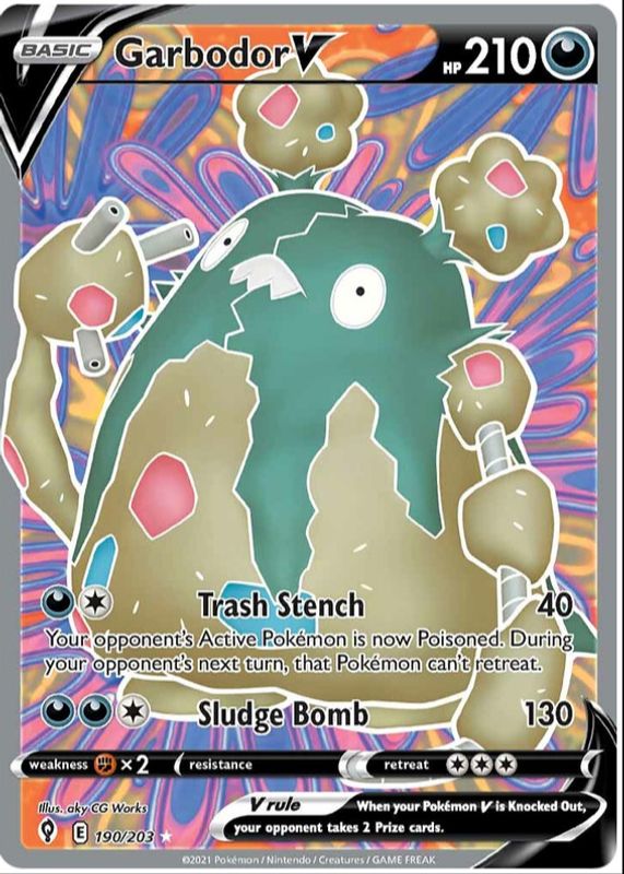 Garbodor V (Full Art) 190/203 Ultra Rare SWSH07: Evolving Skies NM